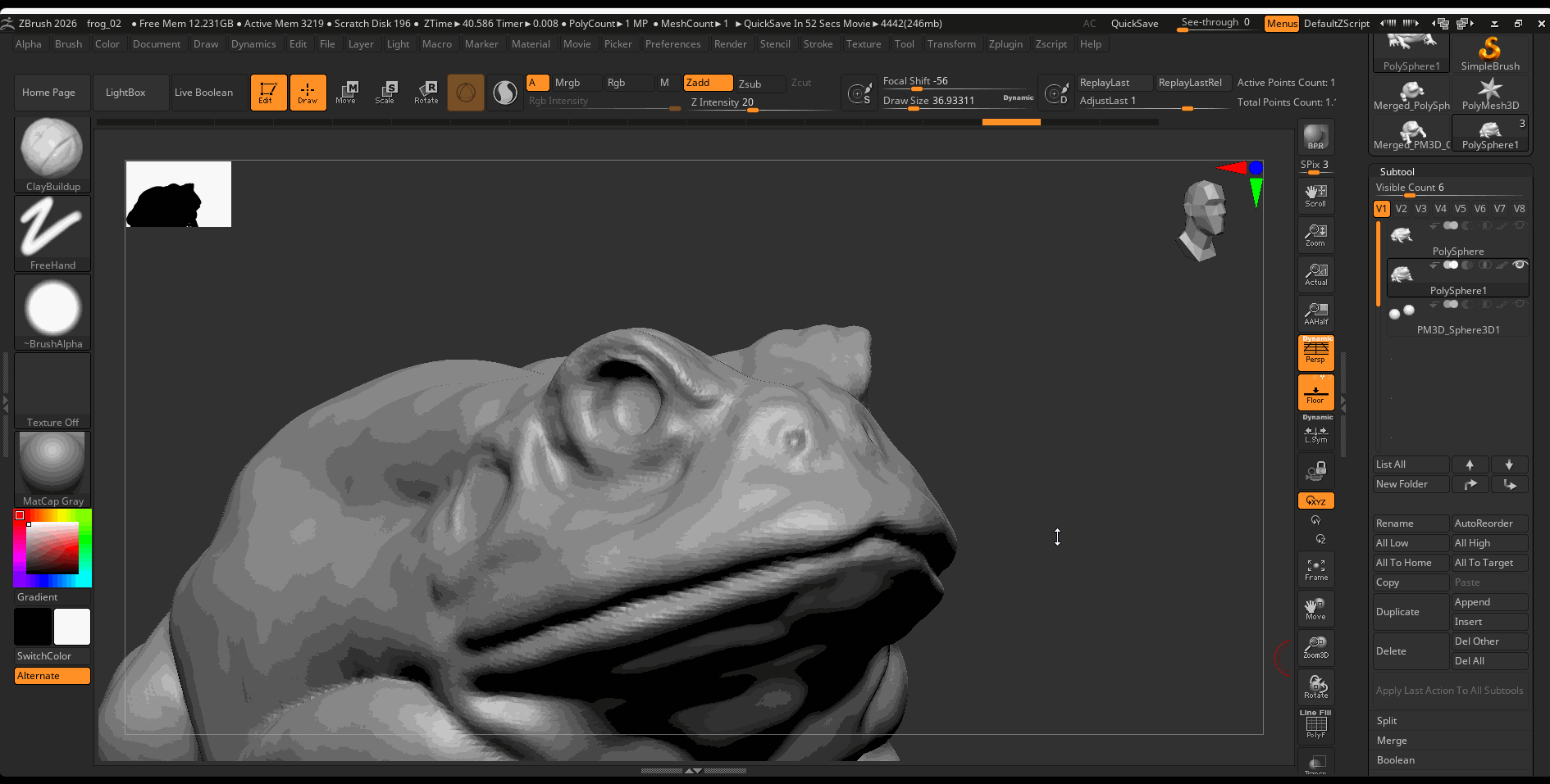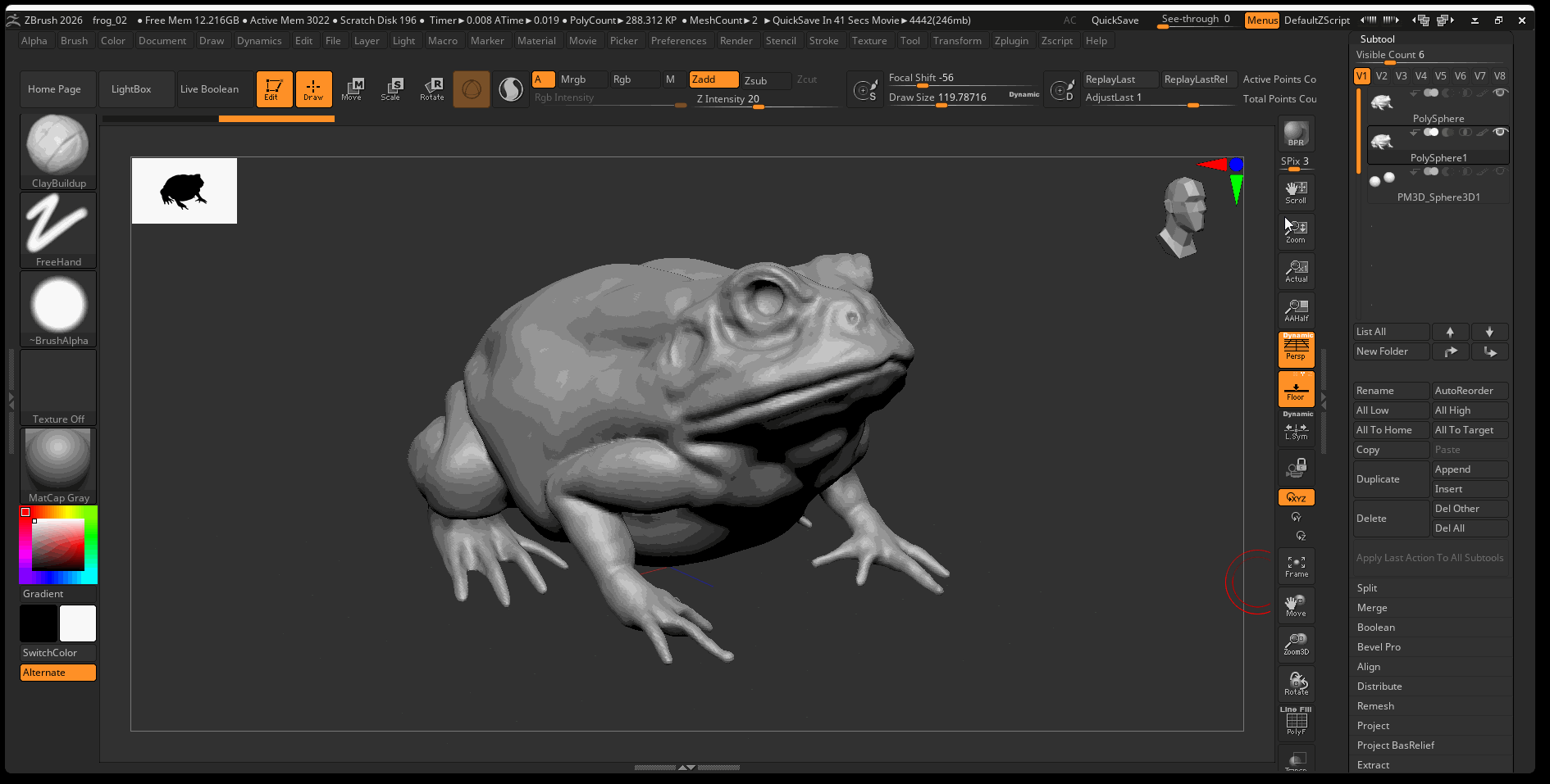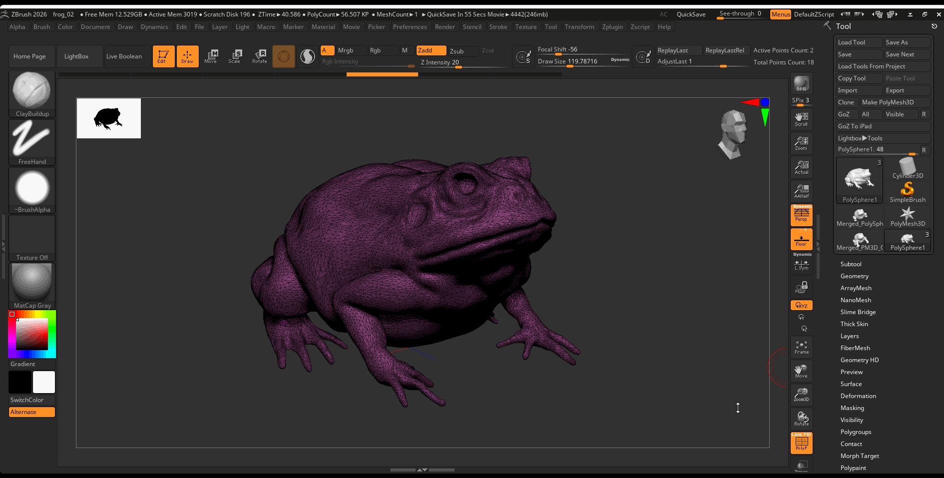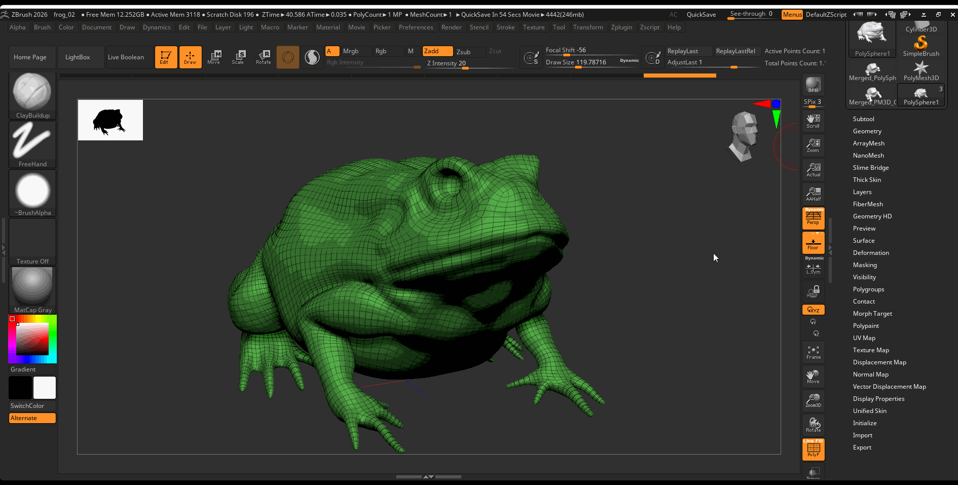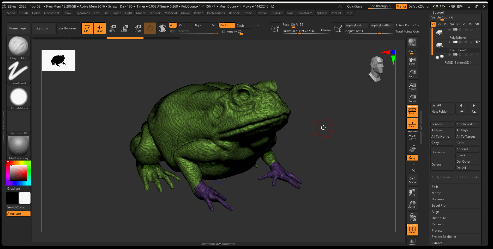 To begin, create a duplicate of the Subtool you want to retopologize. Turn off the visibility of your high poly model and other subtools.