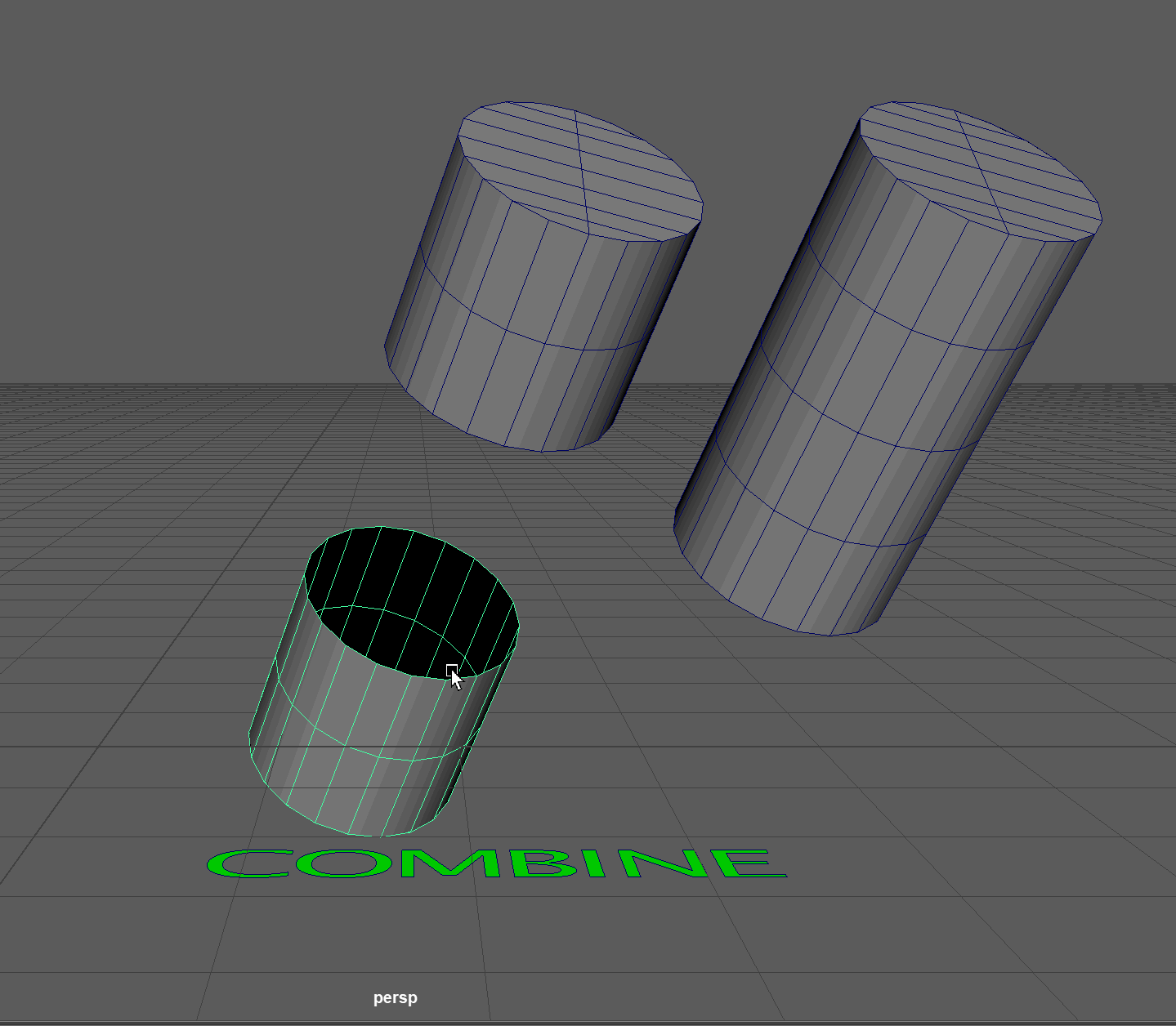 Let's say for those two cylinders, we wanted to merge them. If we tried, we would notice that nothing would happen. That is because we can only weld together two or more vertices that are on the same object. To combine two objects together to make one object, we can use the Combine tool.
