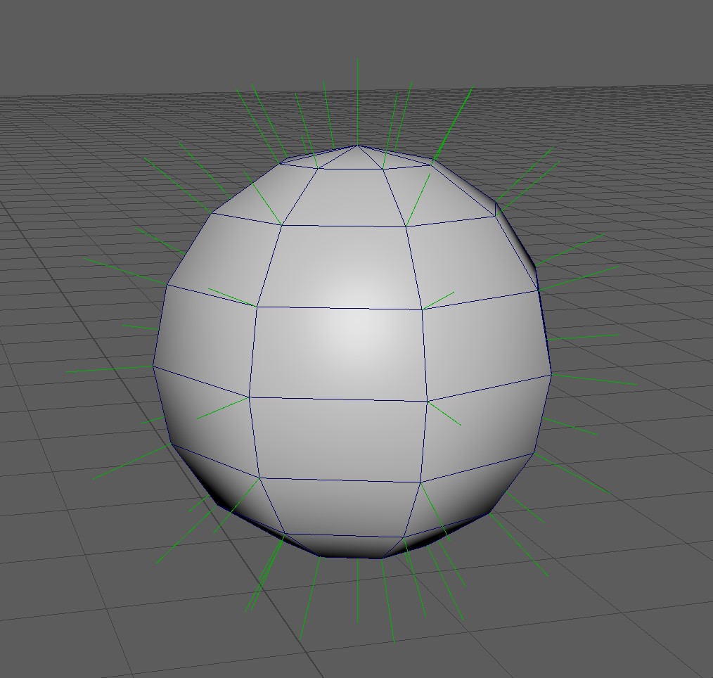 For example, the normal direction of the vertices on a low poly sphere will look something like this: