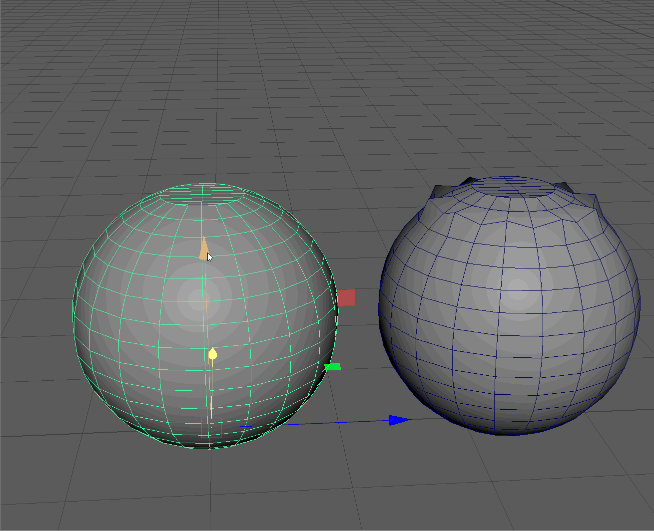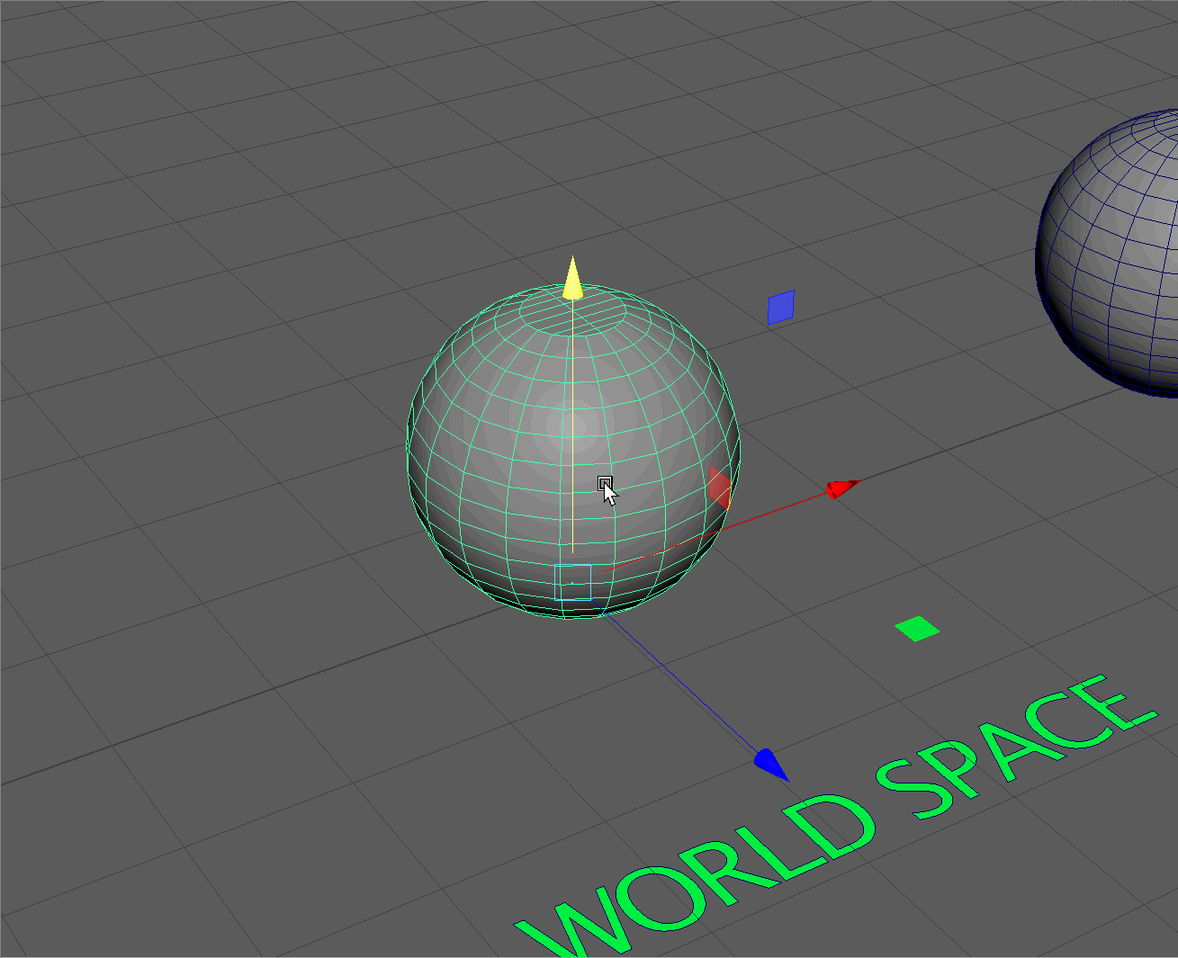 - Select a vertex on the first sphere within the "Component Space" section and move it upward. Notice how it moves in world space. Press Ctrl + Z to undo the movement.