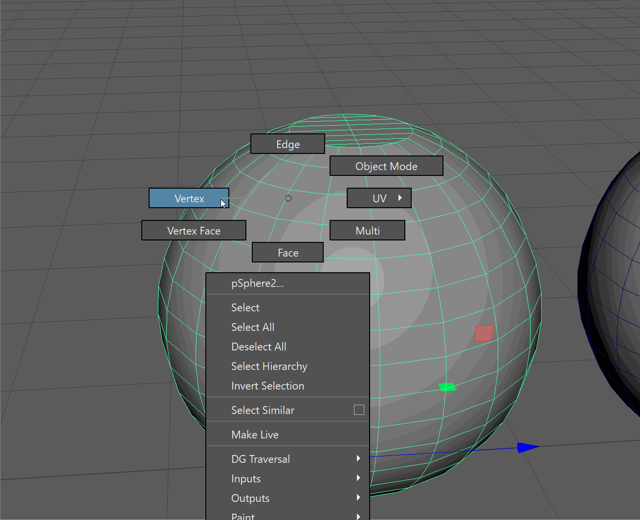 Navigate to the Vertex selection tool by holding RMB over the first model and navigating to Vertex.