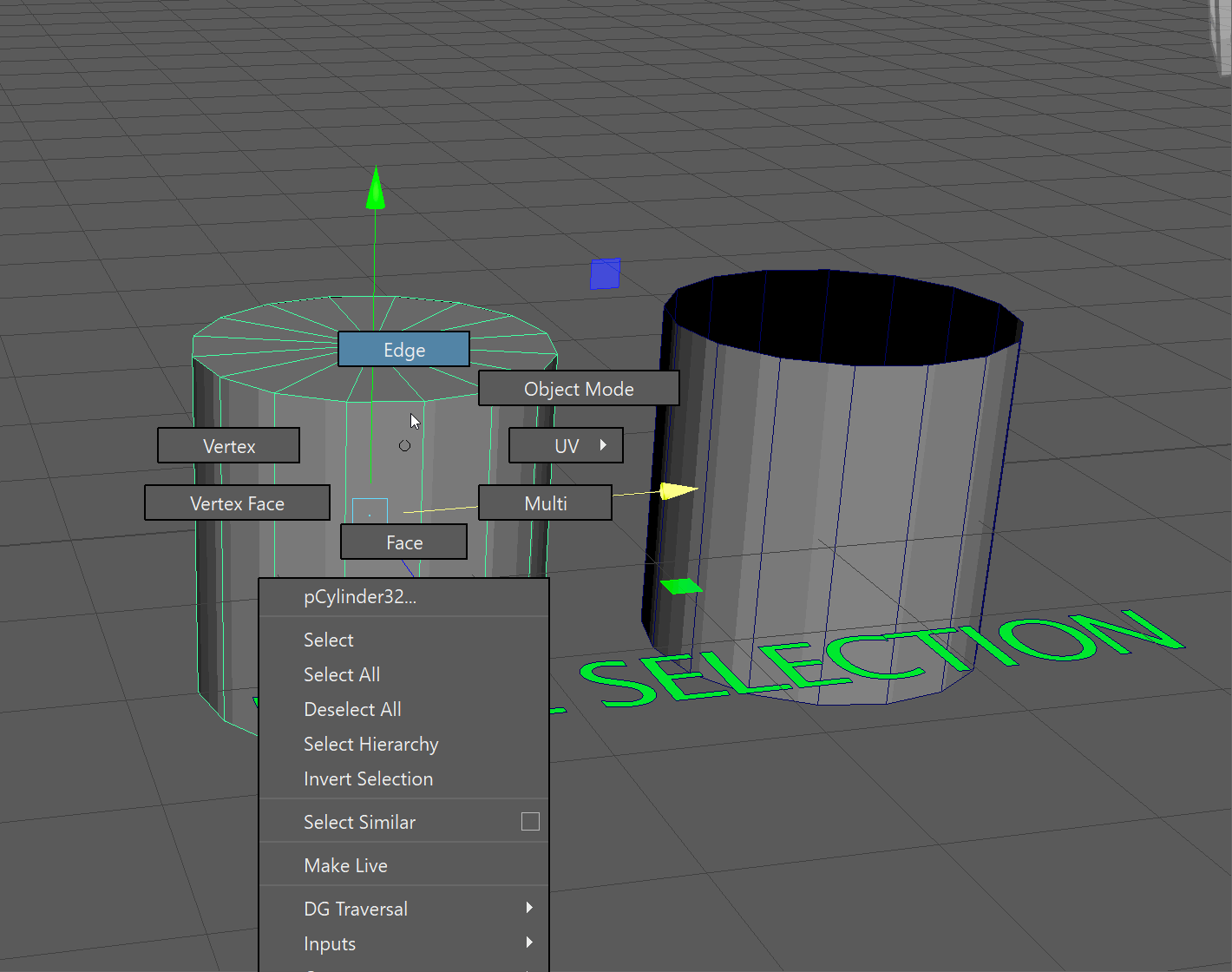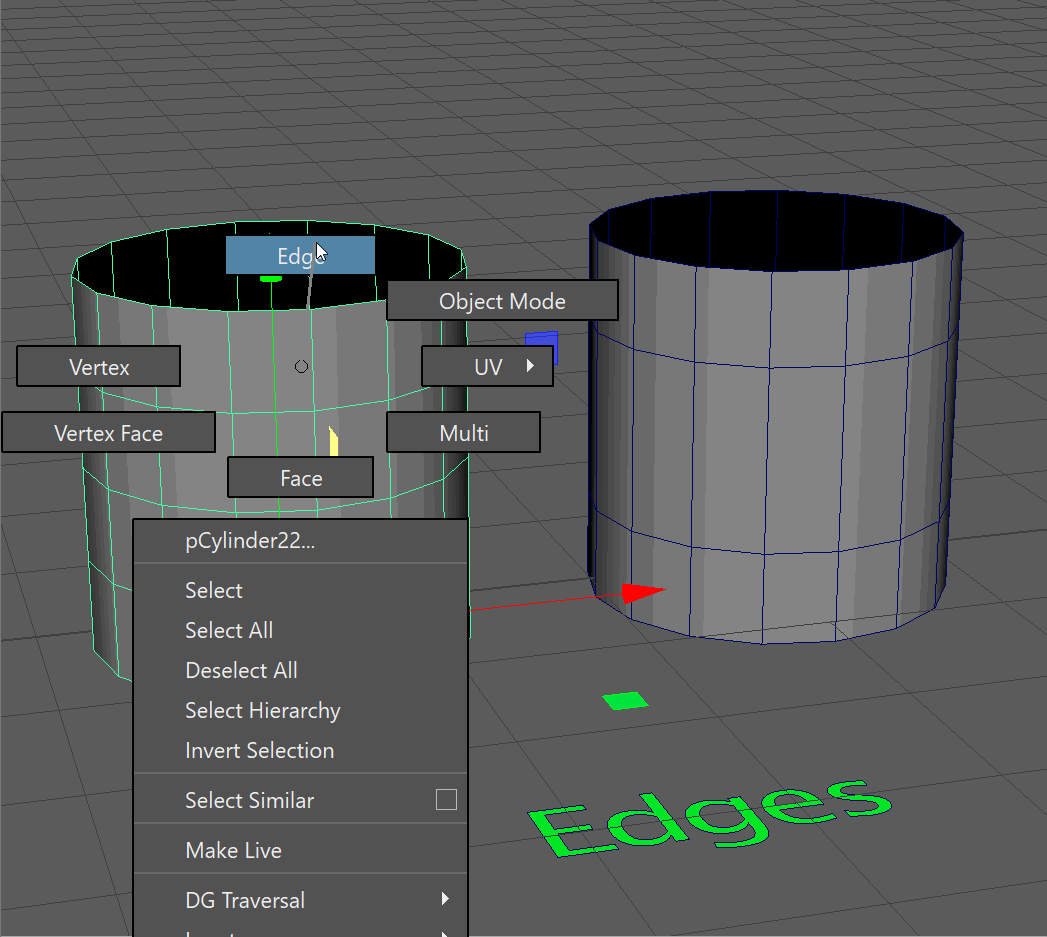 To enter edge selection, we can hold the Right Mouse Button over our model and navigate up to Edge.