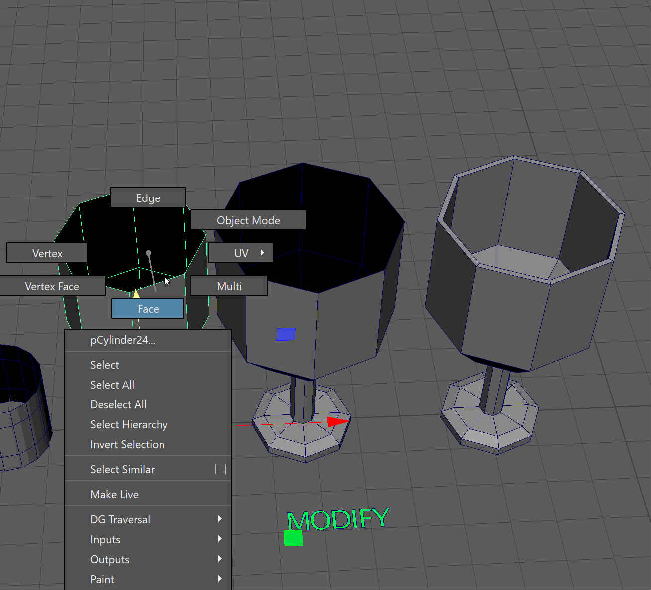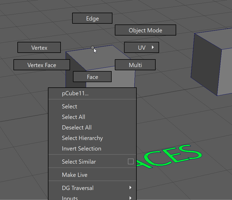 UI TIP: You can use the same marking menu to return to Object Mode when you are done selecting on faces.