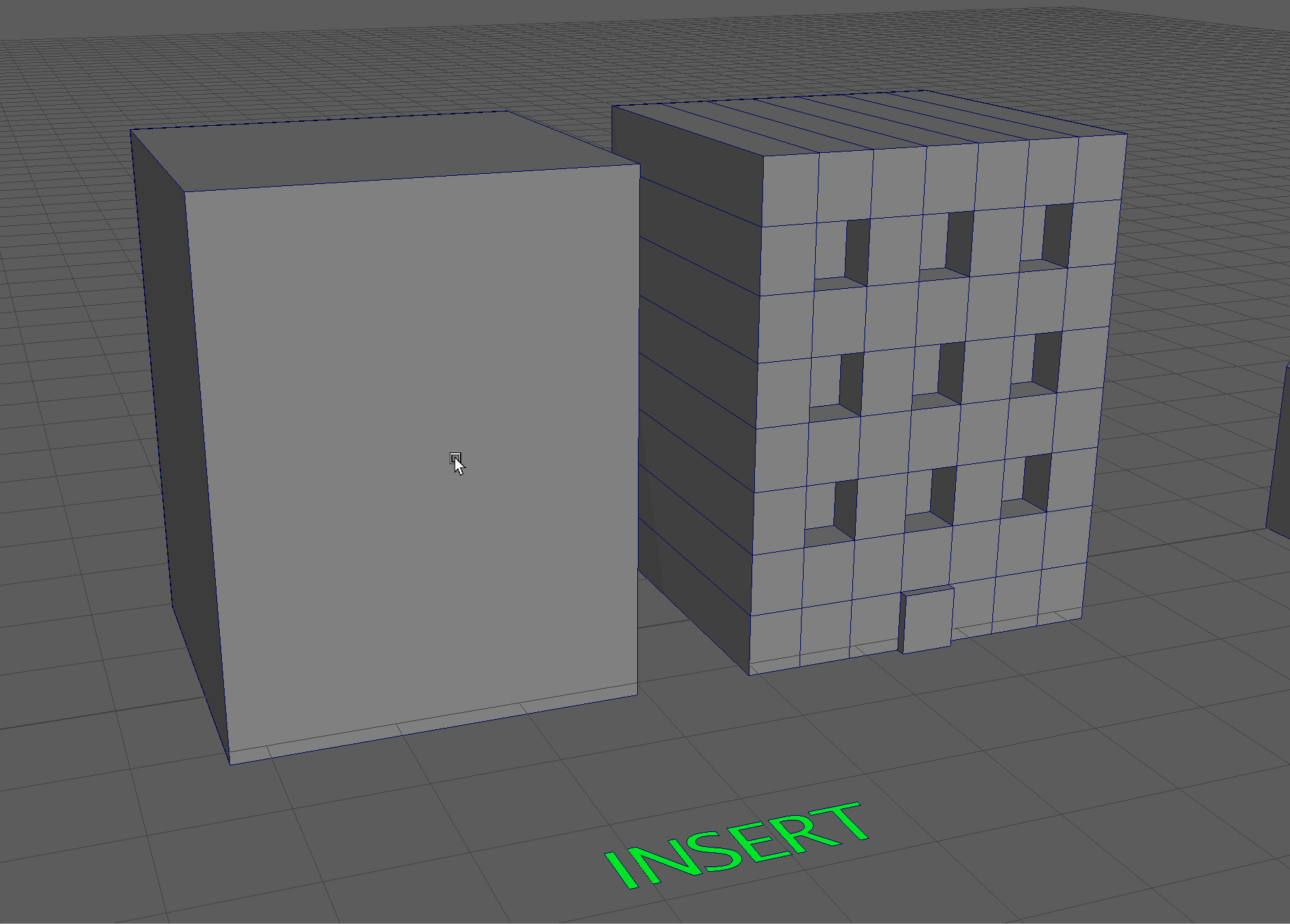 Hold Click + Drag on an edge to insert and position an edge loop. Release Left Click to place the edge loop. Insert edge loops to create the model on the right. Press Q to exit the insert edge loop tool.