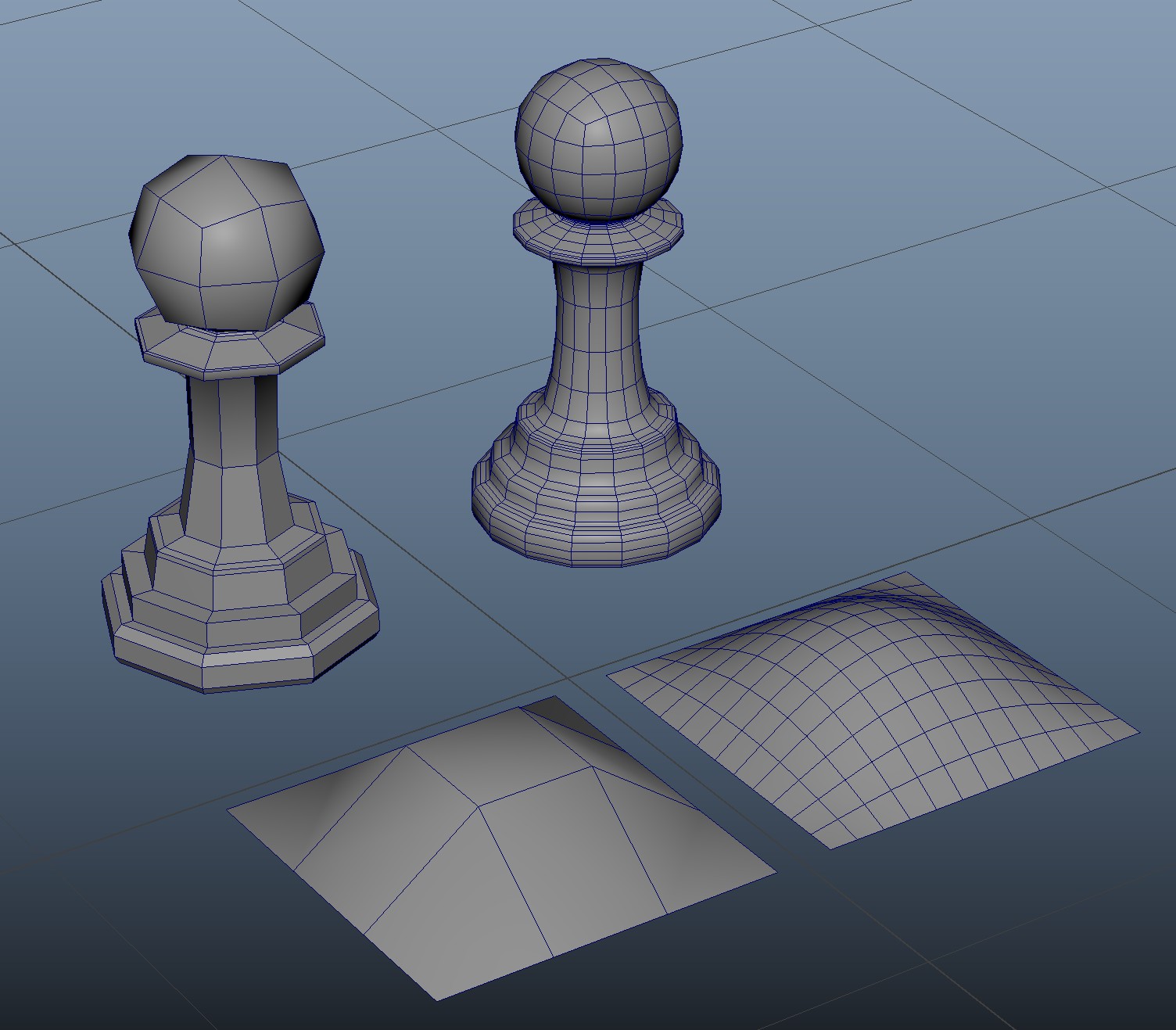 In games, however, where rendering is being calculated in real time, we want our model to be as low resolution as possible while still describing the shape or form that we want to convey.