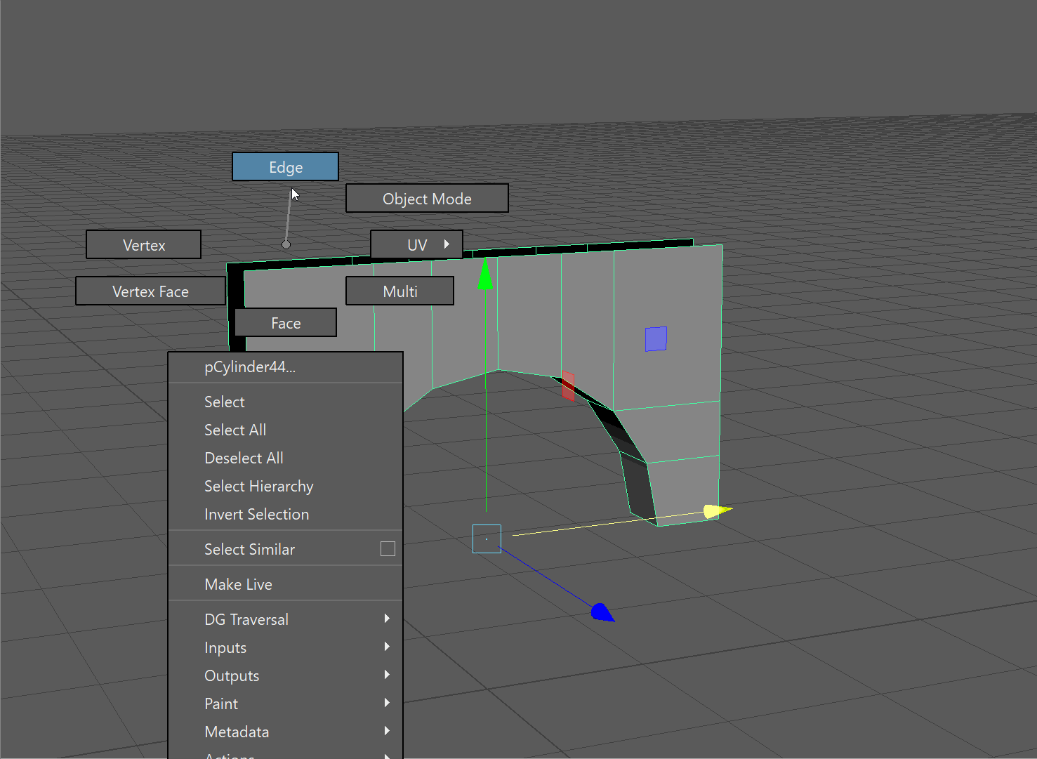 Holding Shift+RMB activate the Mirror tool. This tool allows us to reflect and weld our model along a certain axis.