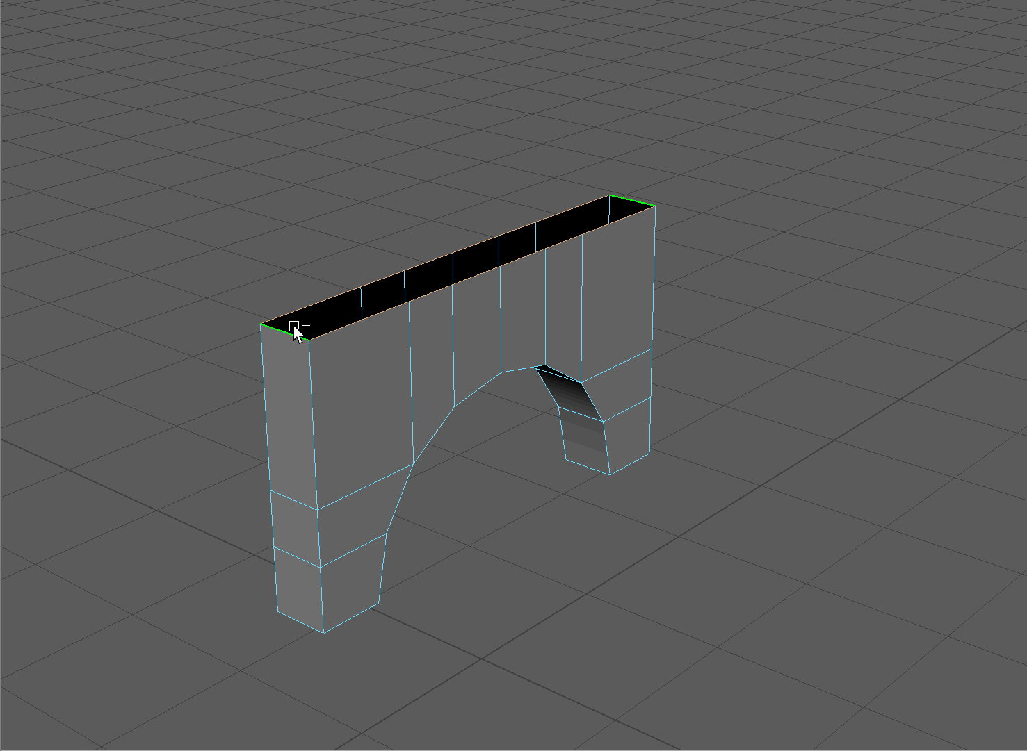 - Select the center 8 edges on the outside of our arch and extrude them along the Y Axis.