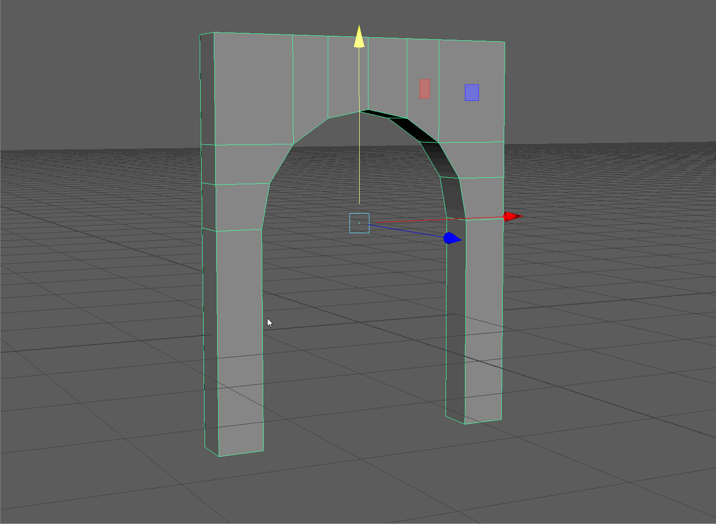 - Extrude the sides of our arch and snap them to the front vertices along the Z Axis.