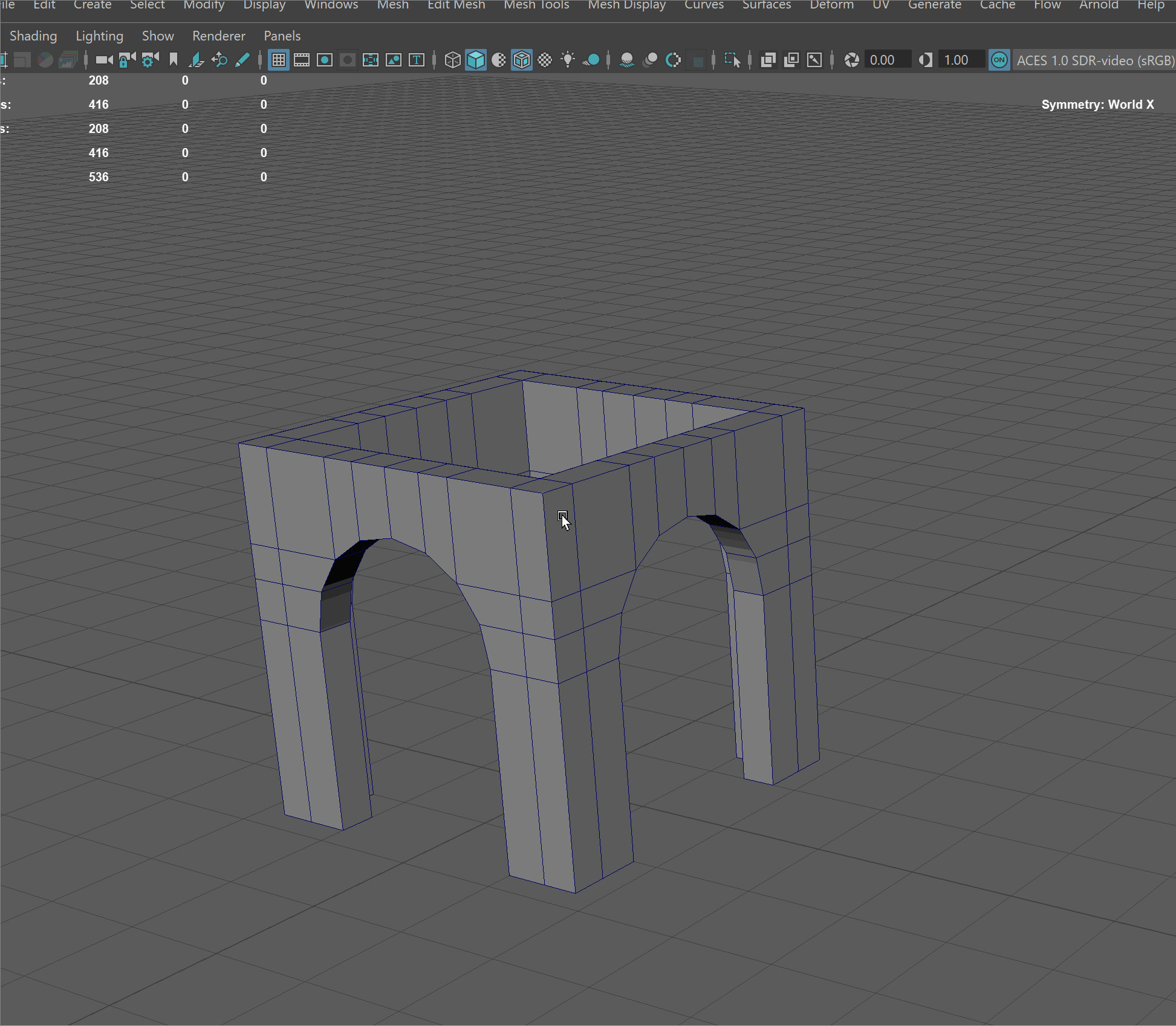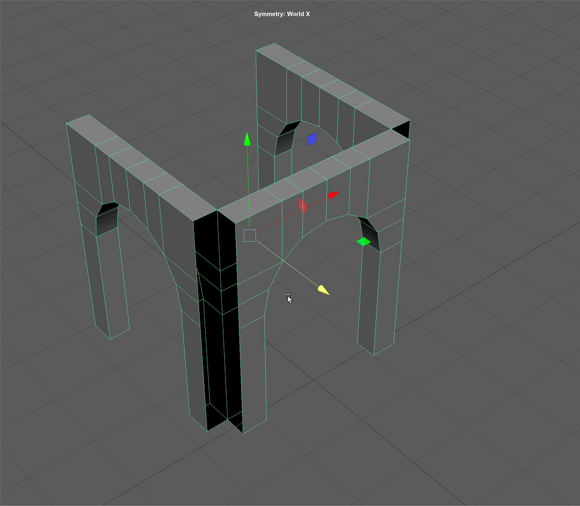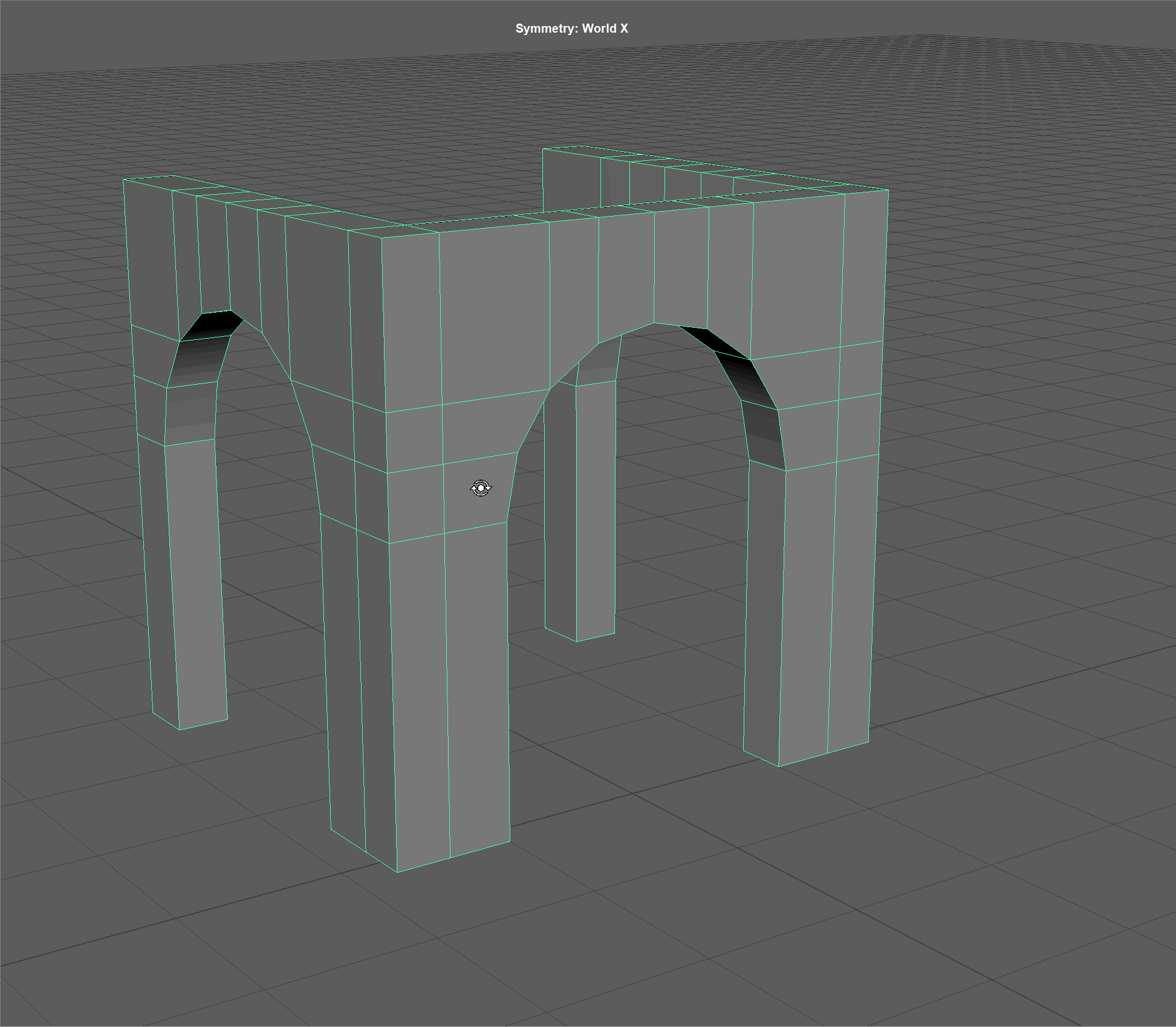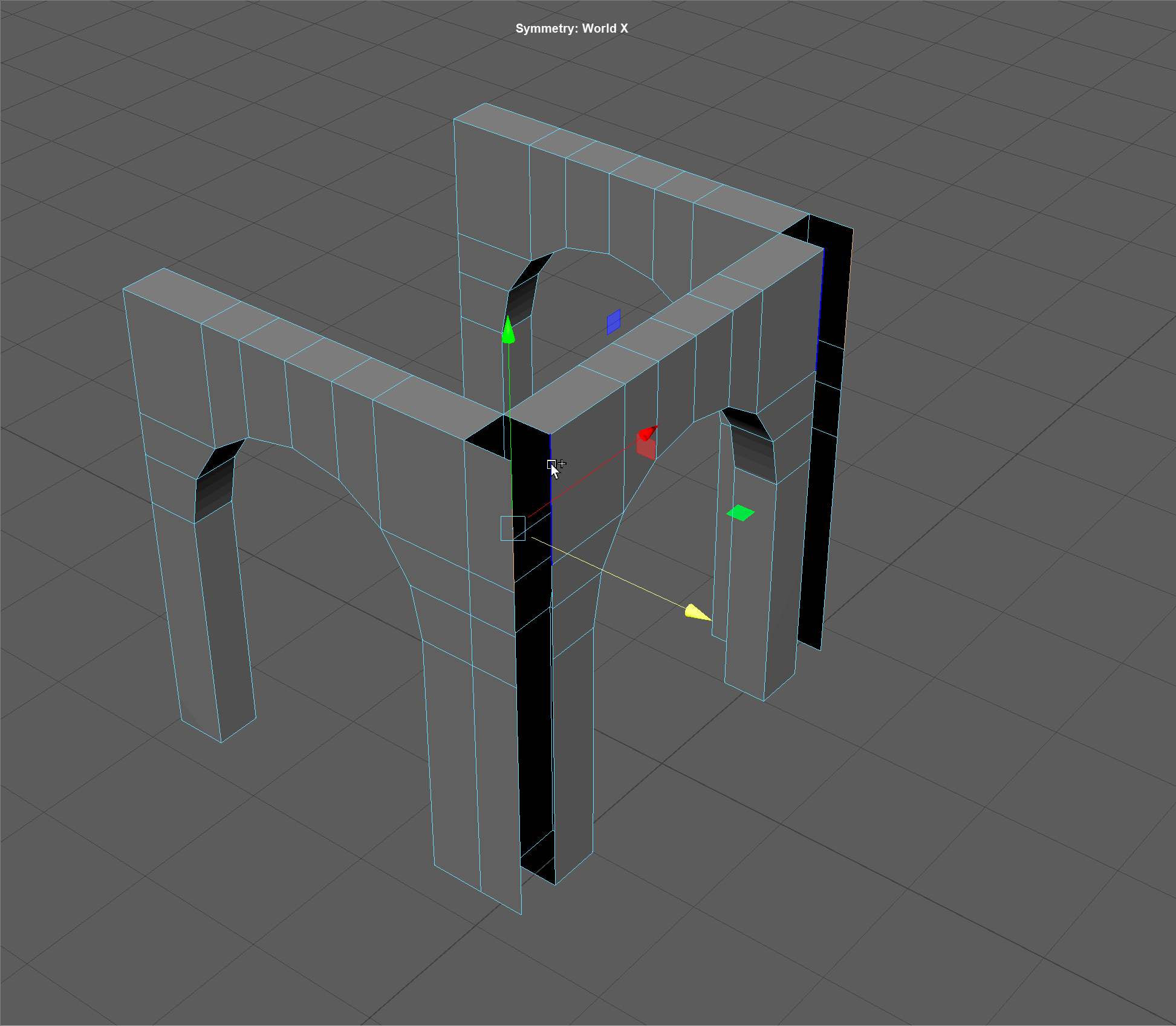 - With Symmetry still on, delete the interior faces of the corner of our archway.