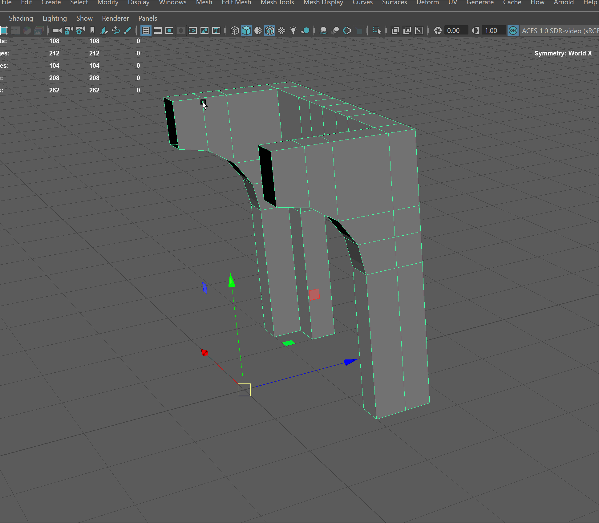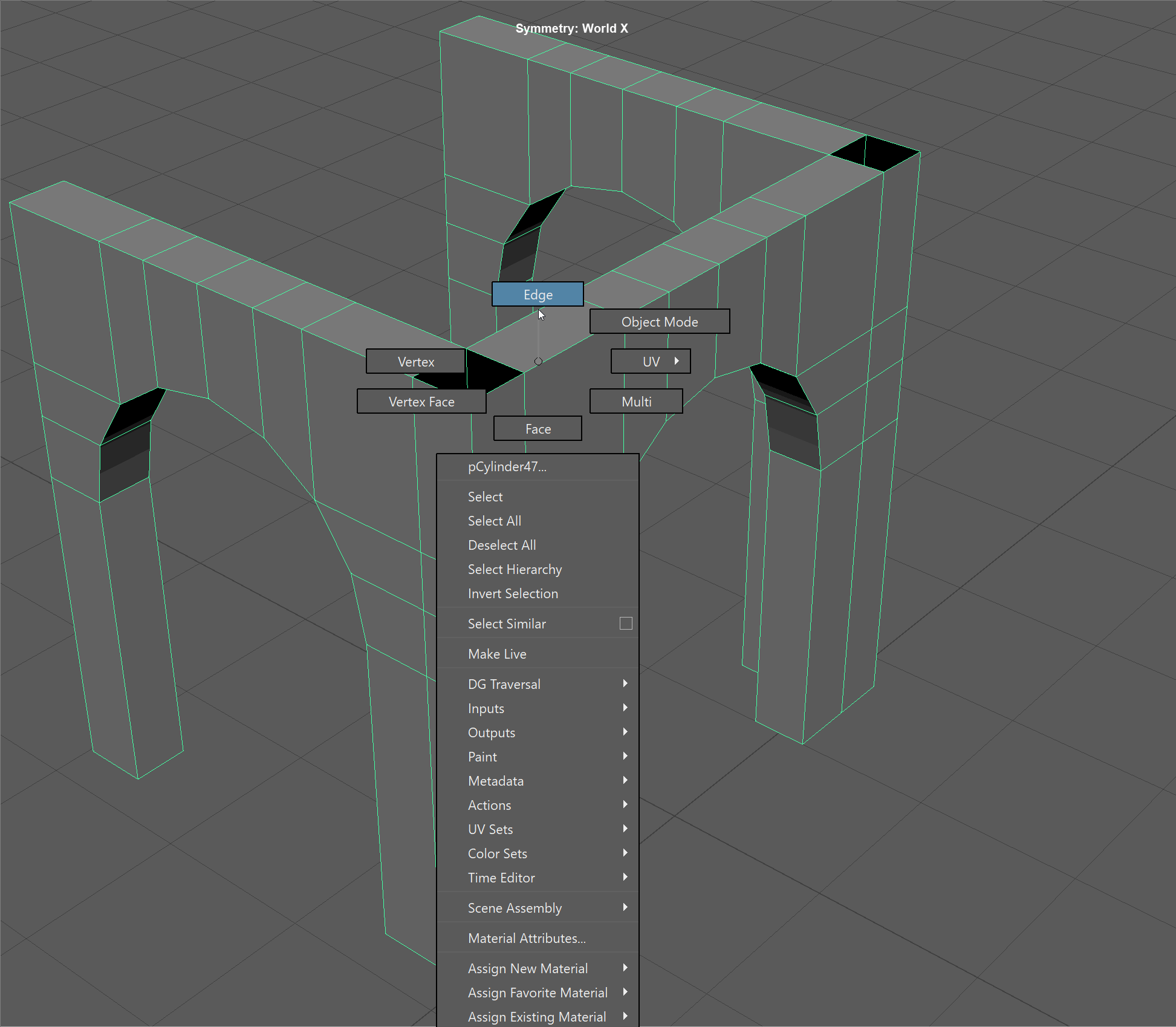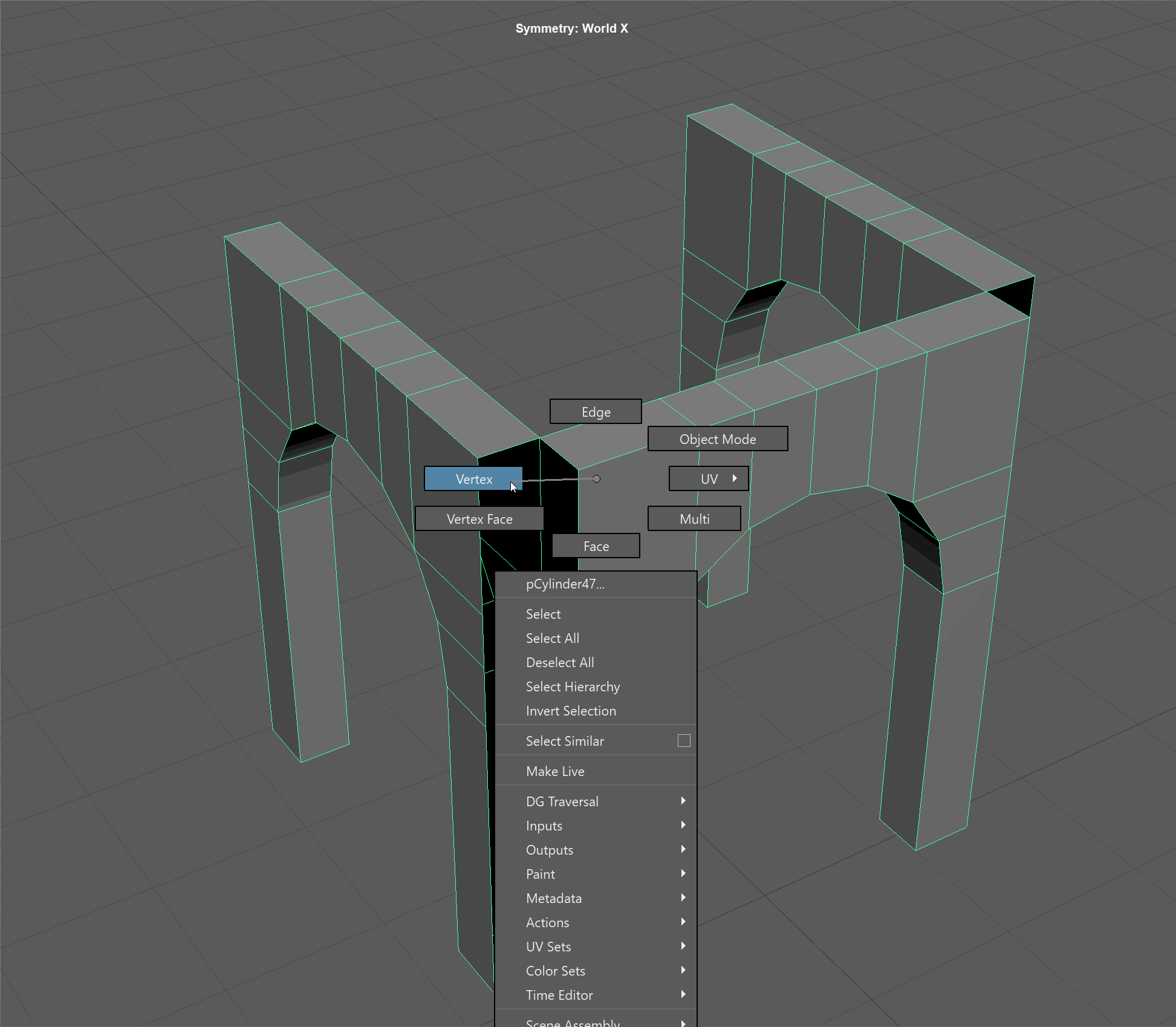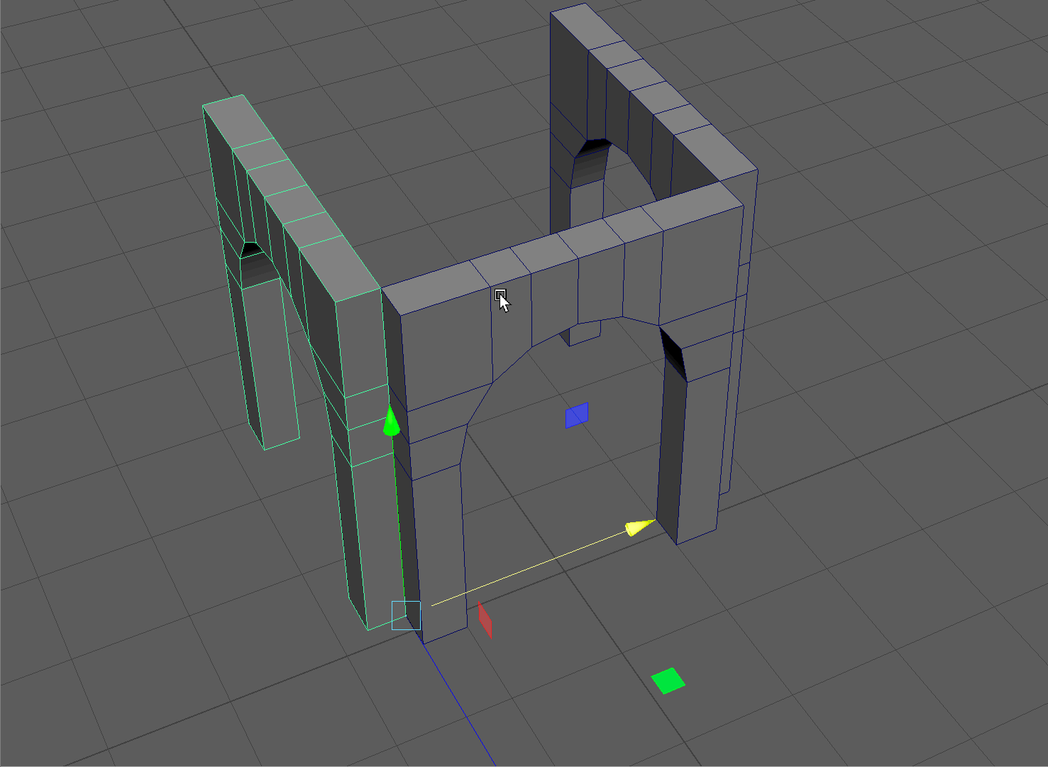 - With Symmetry still on, delete the interior faces of the corner of our archway.