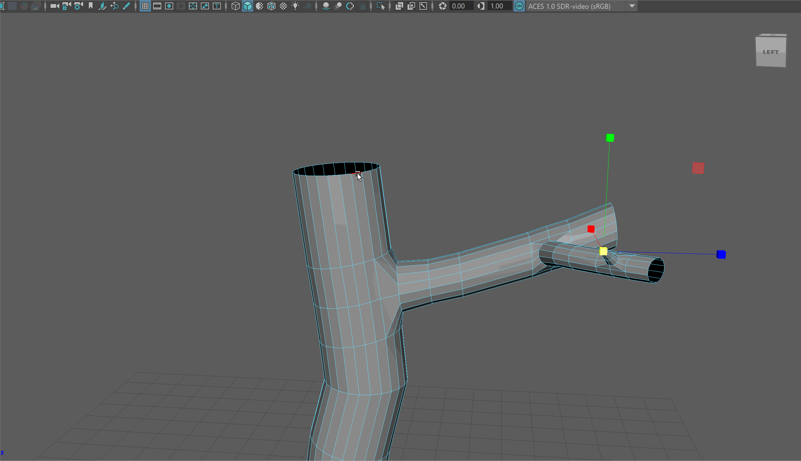 - Either using the bridge tool or the move vertices tool, join the two branches together.