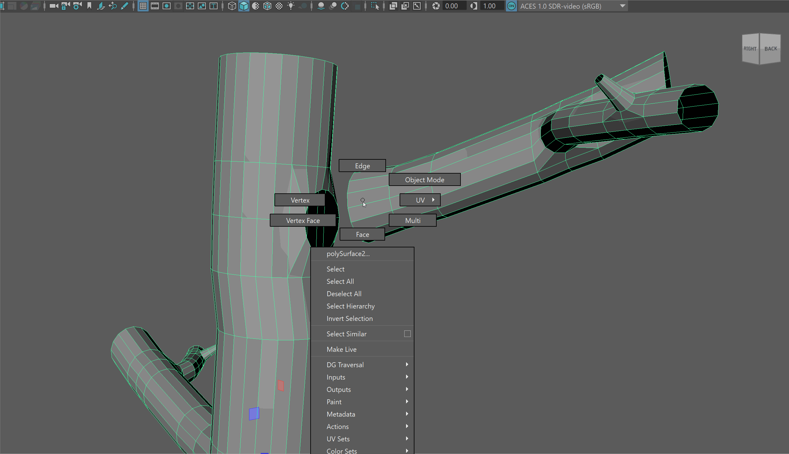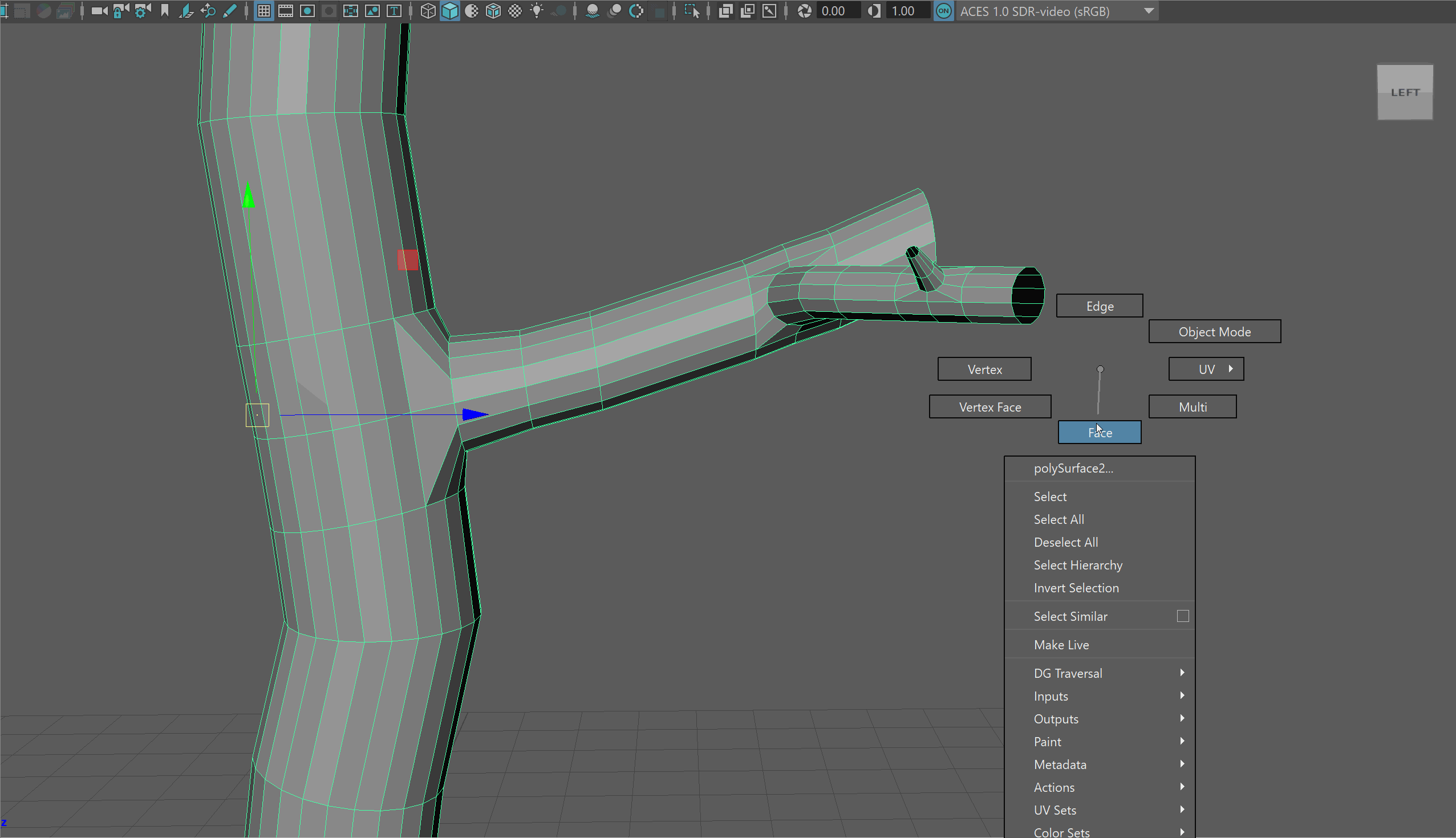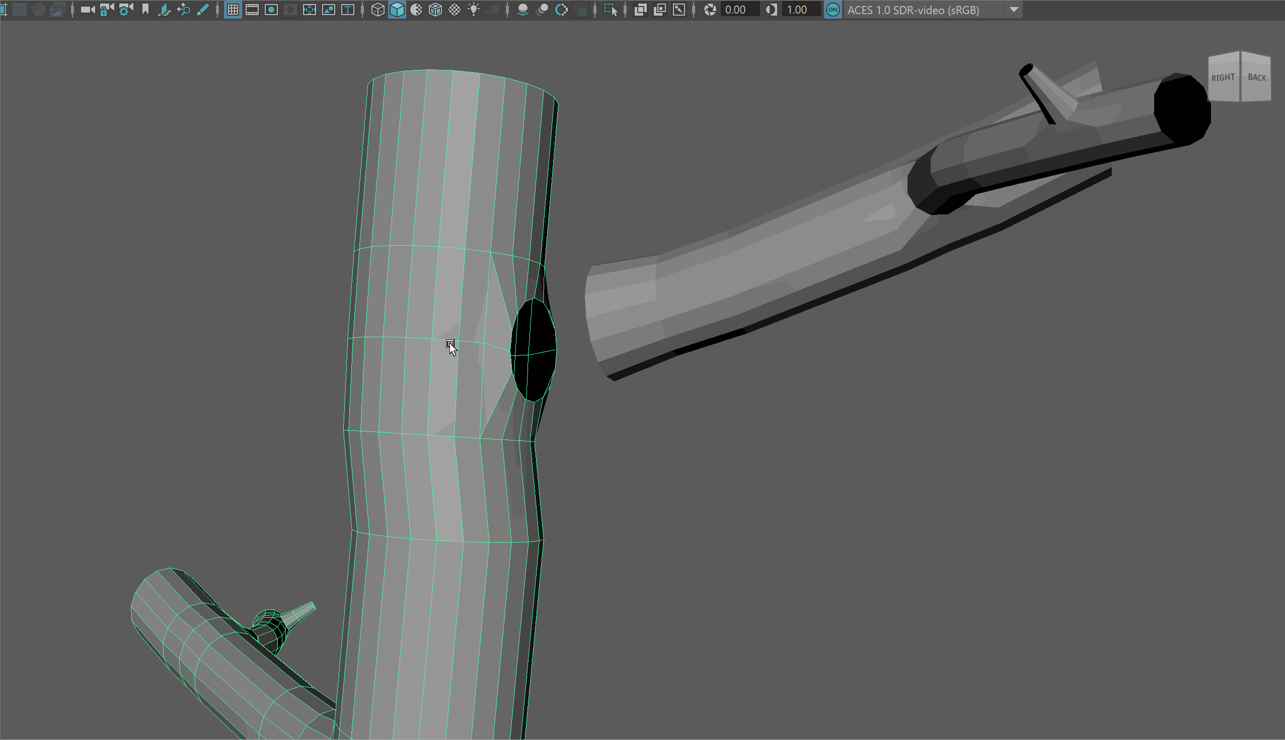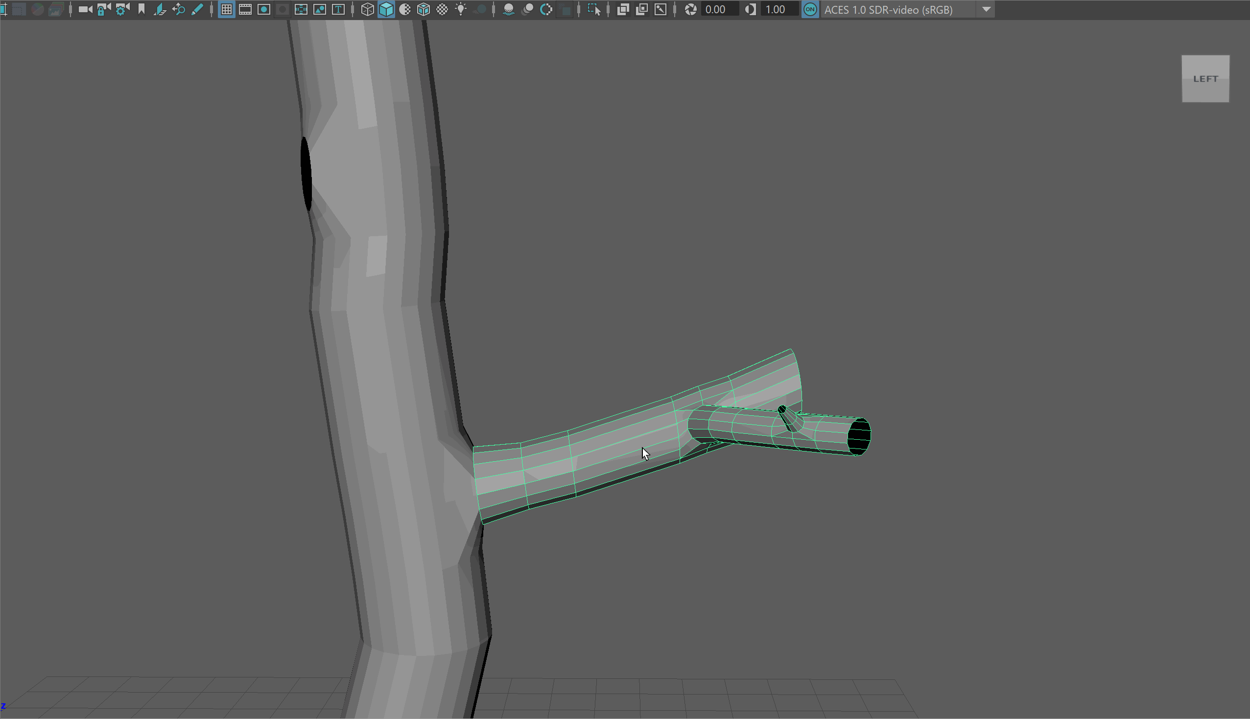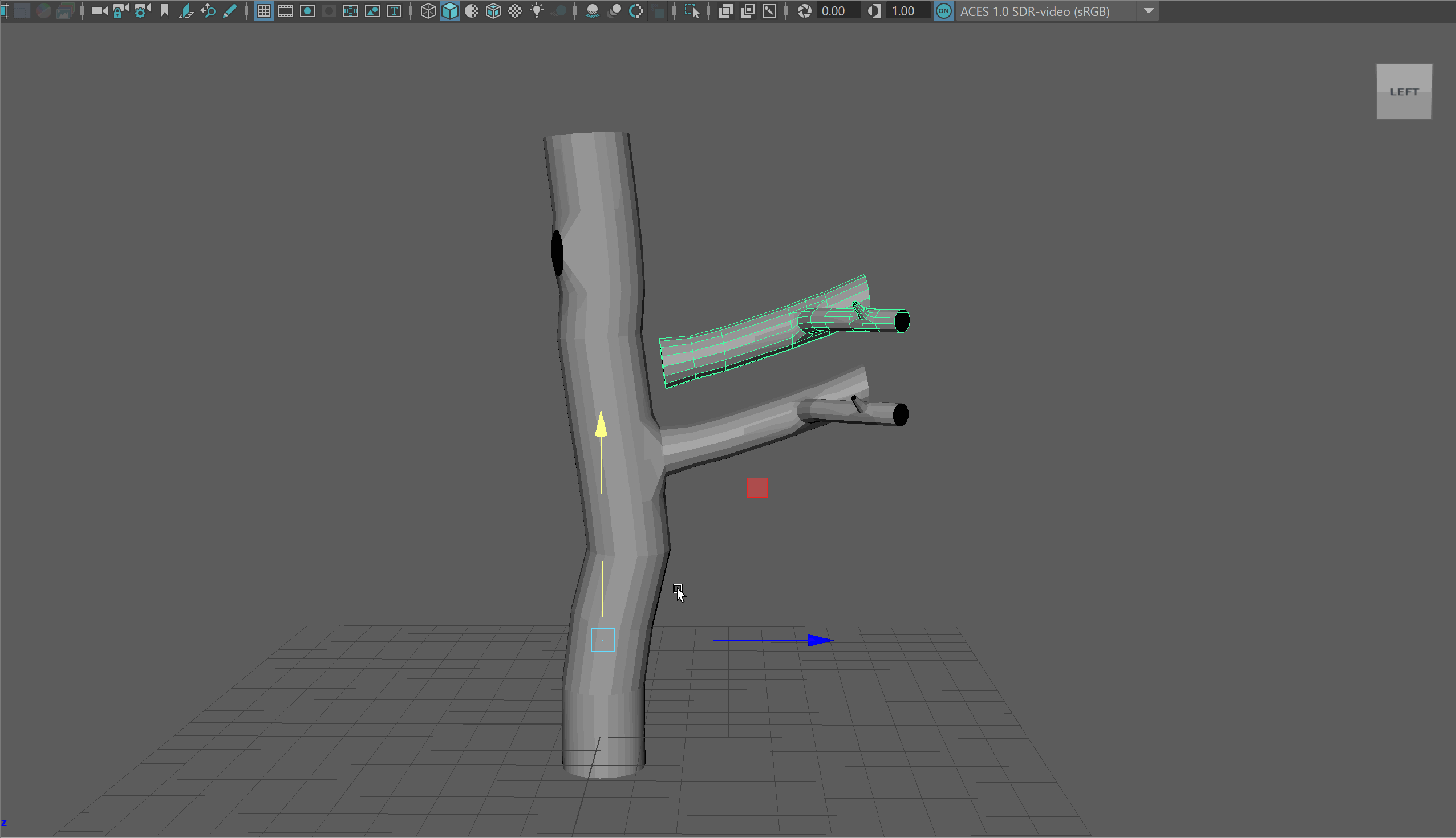 - Delete the faces and begin extruding out the edge loop to make a new branch. You may notice you need to adjust the scale of your edge loops.