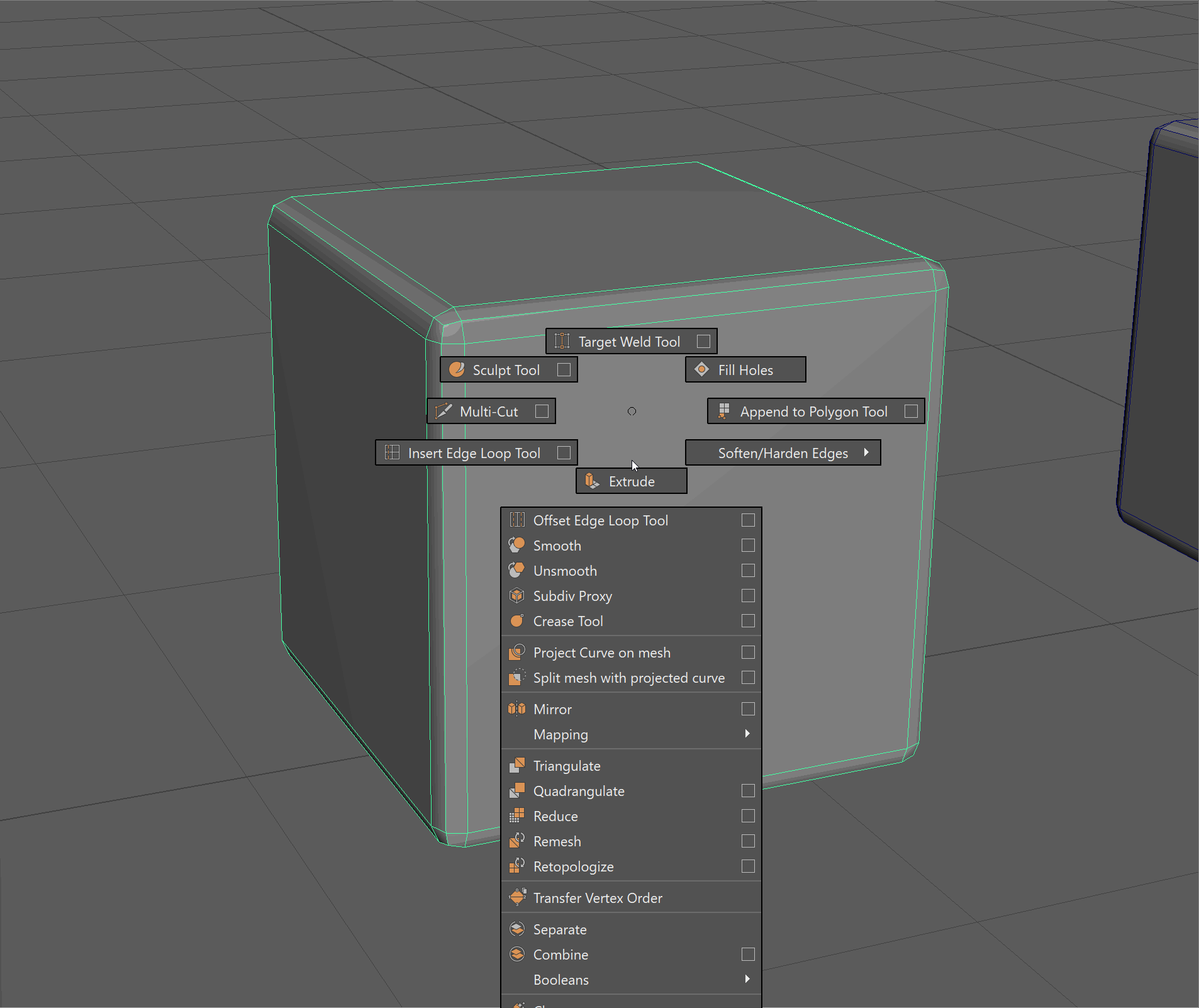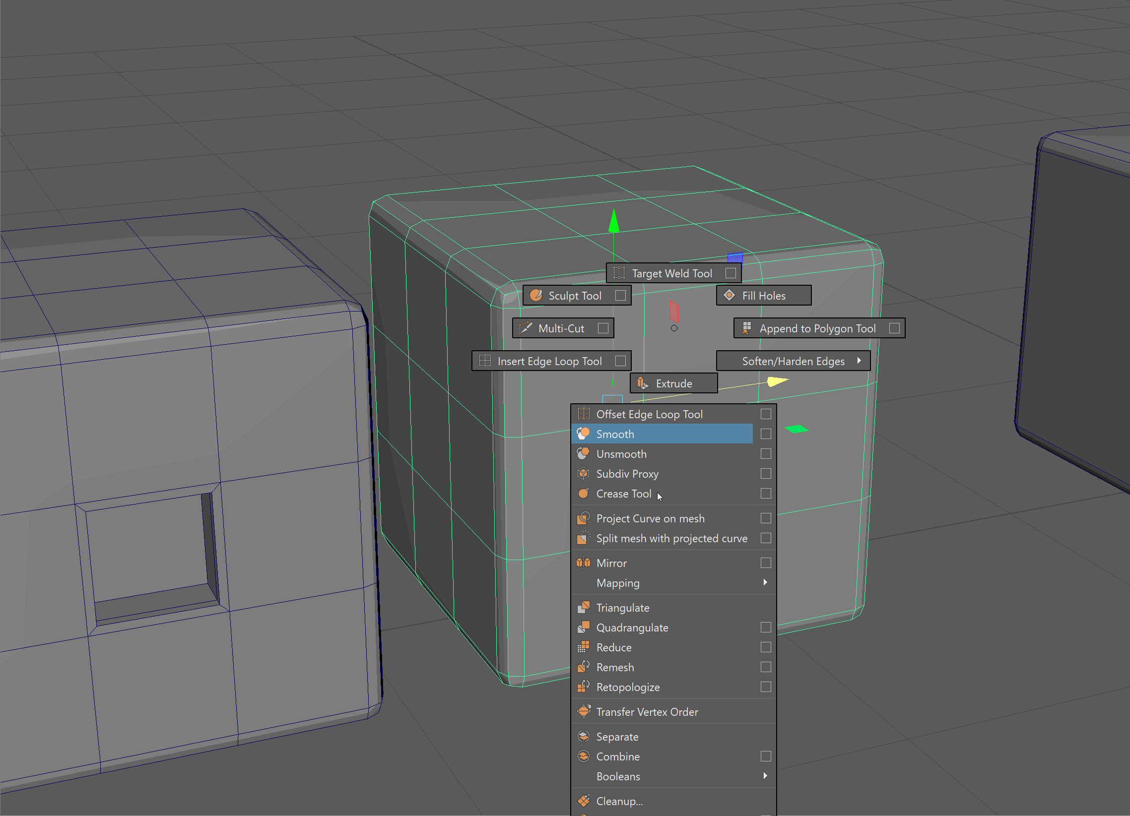 First, we'll add edge loops all around our model so it smooths to a cube shape.