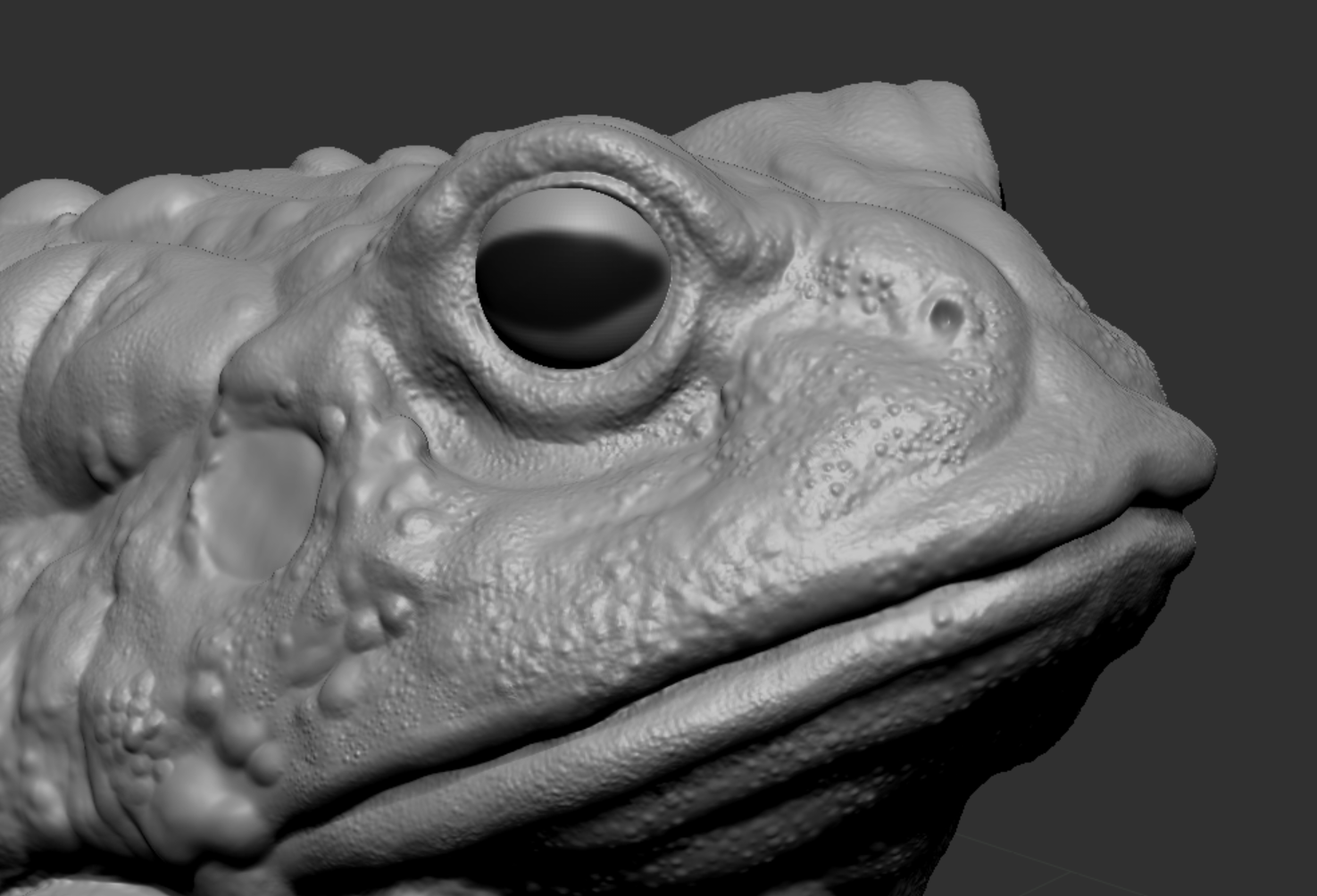 Your final familiar ZBrush model should be retopologized and have finalized tertiary and surface details.